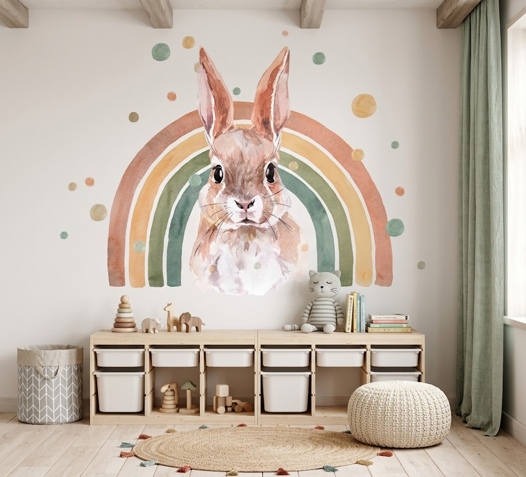 FRIENDS RABIT - Aufkleber / Wandtattoo / Kaninchen / Regenbogenzimmer
