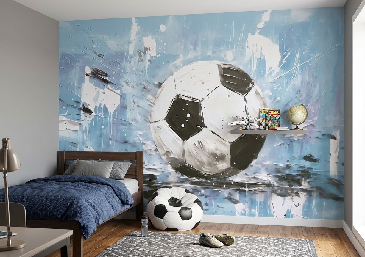 Decorate your soccer champion's room with our Ball&Roll wallpaper! Provide your boy with a motivational environment that will inspire the development of sports skills. This colorful and dynamic wallpaper for kids is a hit with soccer fans!