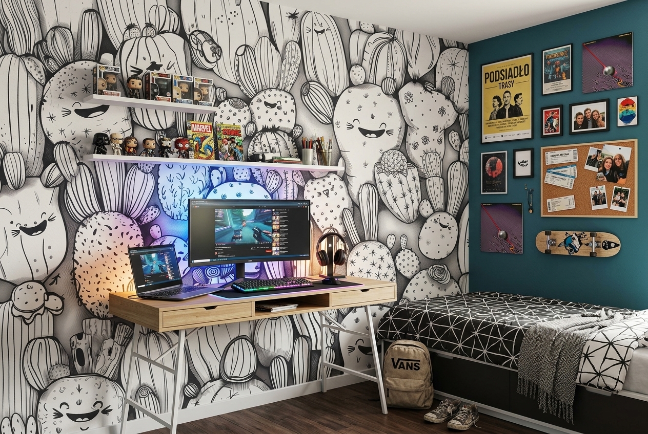This adorable black and white wallpaper takes toddlers to the adventurous world of desert plants that not only grow, but also laugh!