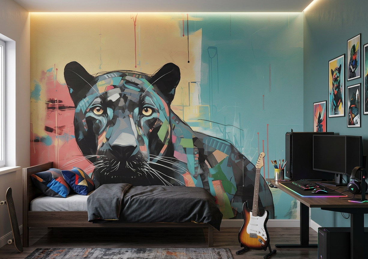 This unique wallpaper combines modern design, intense colors and geometric forms, taking you straight to the heart of the jungle. Let your interior speak about you - boldly!