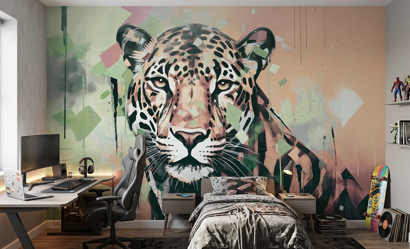 Leopard wallpaper is a perfect combination of modern design with expressive colors and geometric forms. It will attract the attention of any young interior explorer!