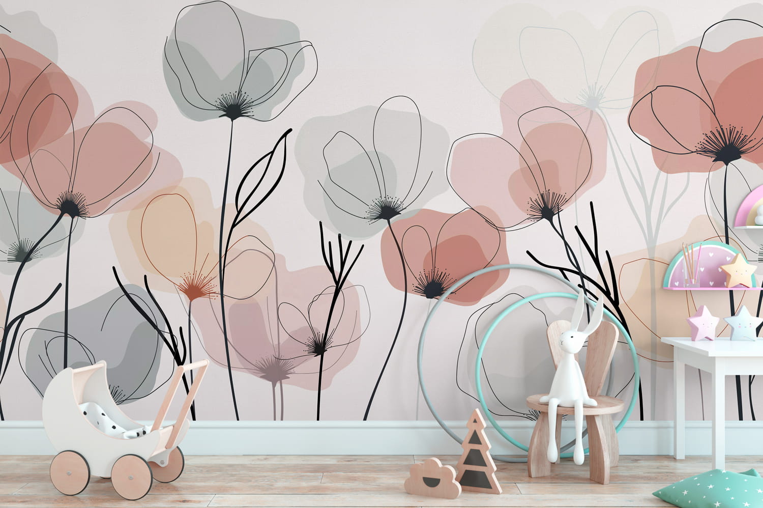 This is an excellent choice for lovers of minimalist design and subtle decorations. Simple flowers and leaves, a streamlined form kept in a pastel color palette, adds lightness to the space without overwhelming it. Ideal for modern interiors and children's rooms.