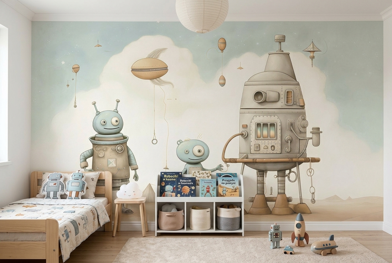 ROBO EXPLORERS wallpaper showing robots on another planet and cosmic landscapes is not only a way to create a unique character in a child's room, but also to travel into the magical world of imagination. Such designs can become a bridge between reality and fantasy, giving children the opportunity to develop their dreams and passions.