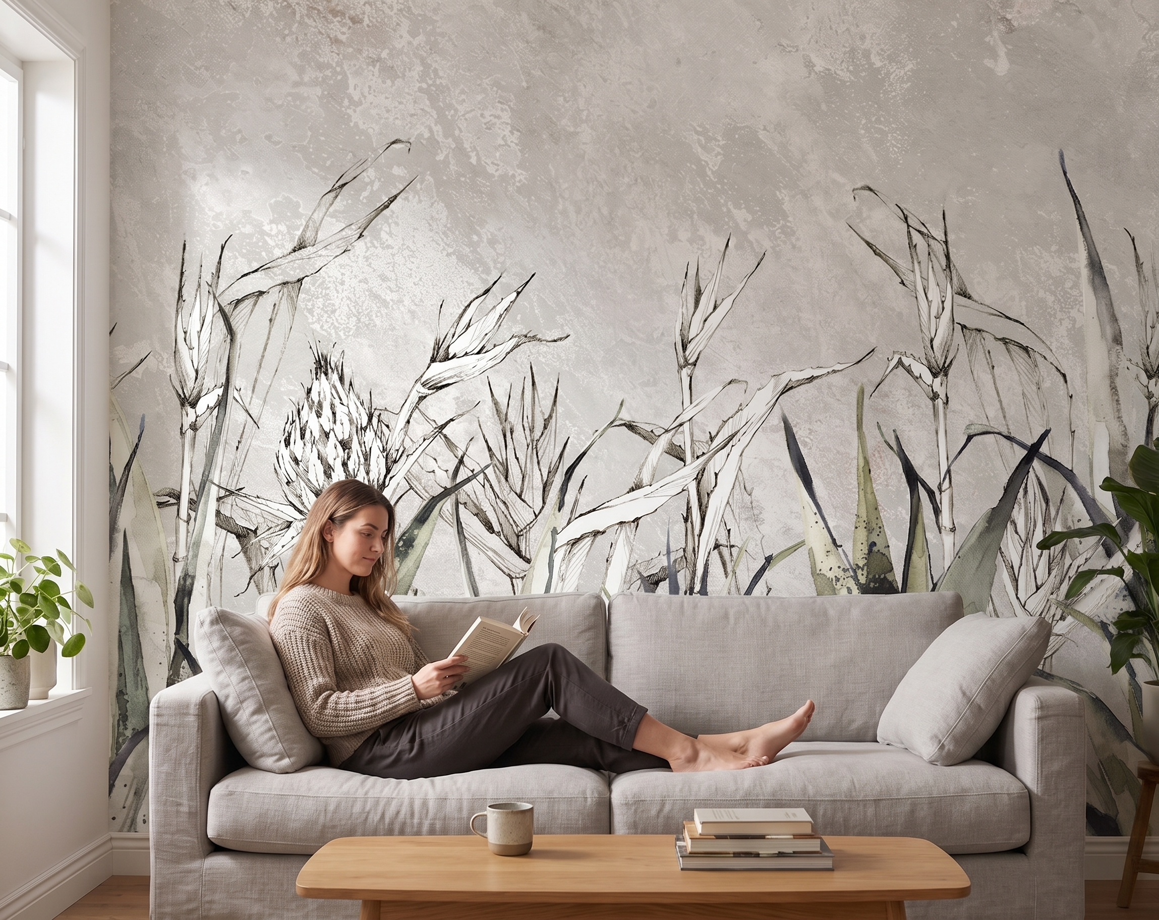 Odkryj nowy wymiar wystroju wnętrz z naszą tapetą EXOTIC. Przenieś się w świat tropików, gdzie egzotyczne liście tańczą w harmonii stonowanych odcieni, tworząc spokojną siłę natury w Twoim pokoju.