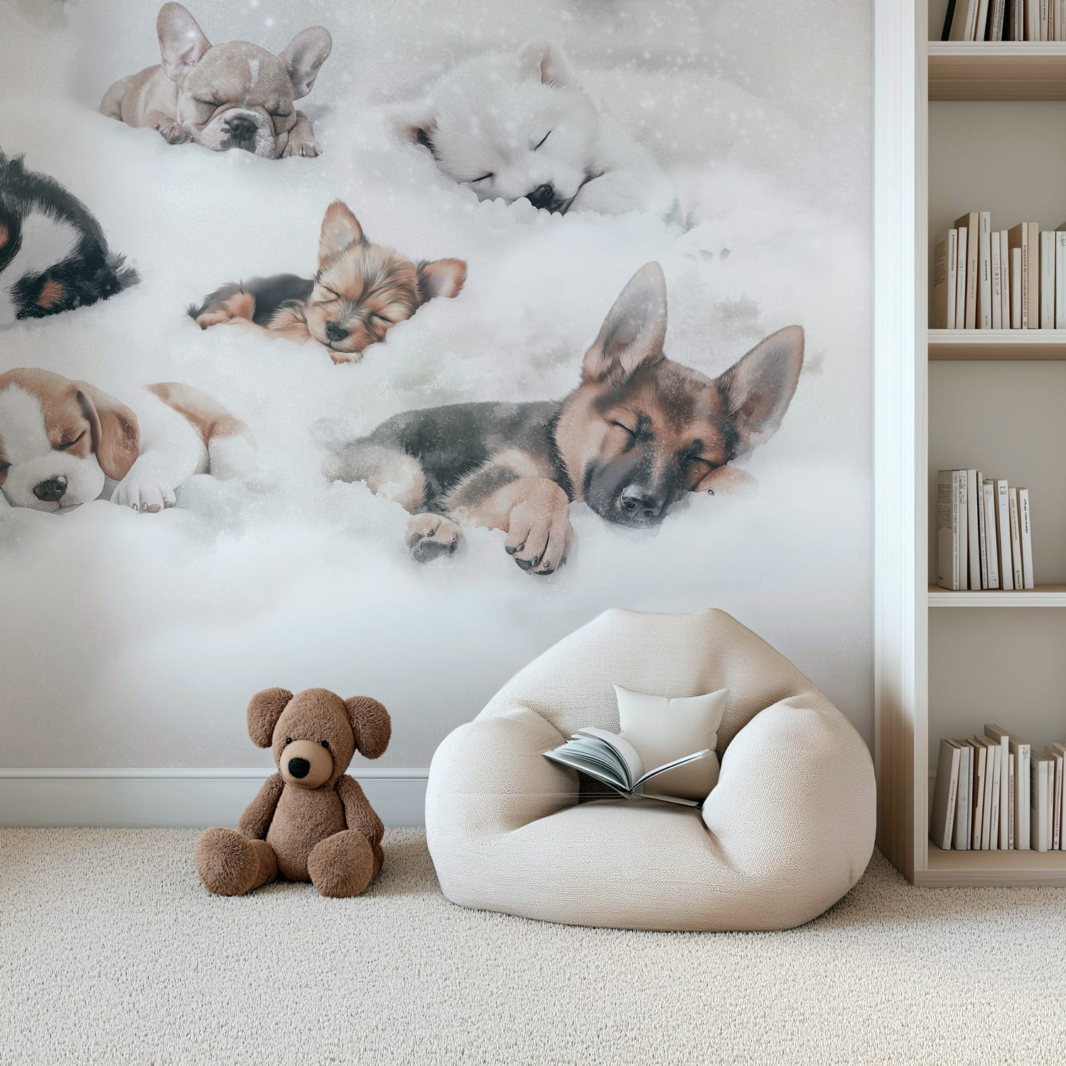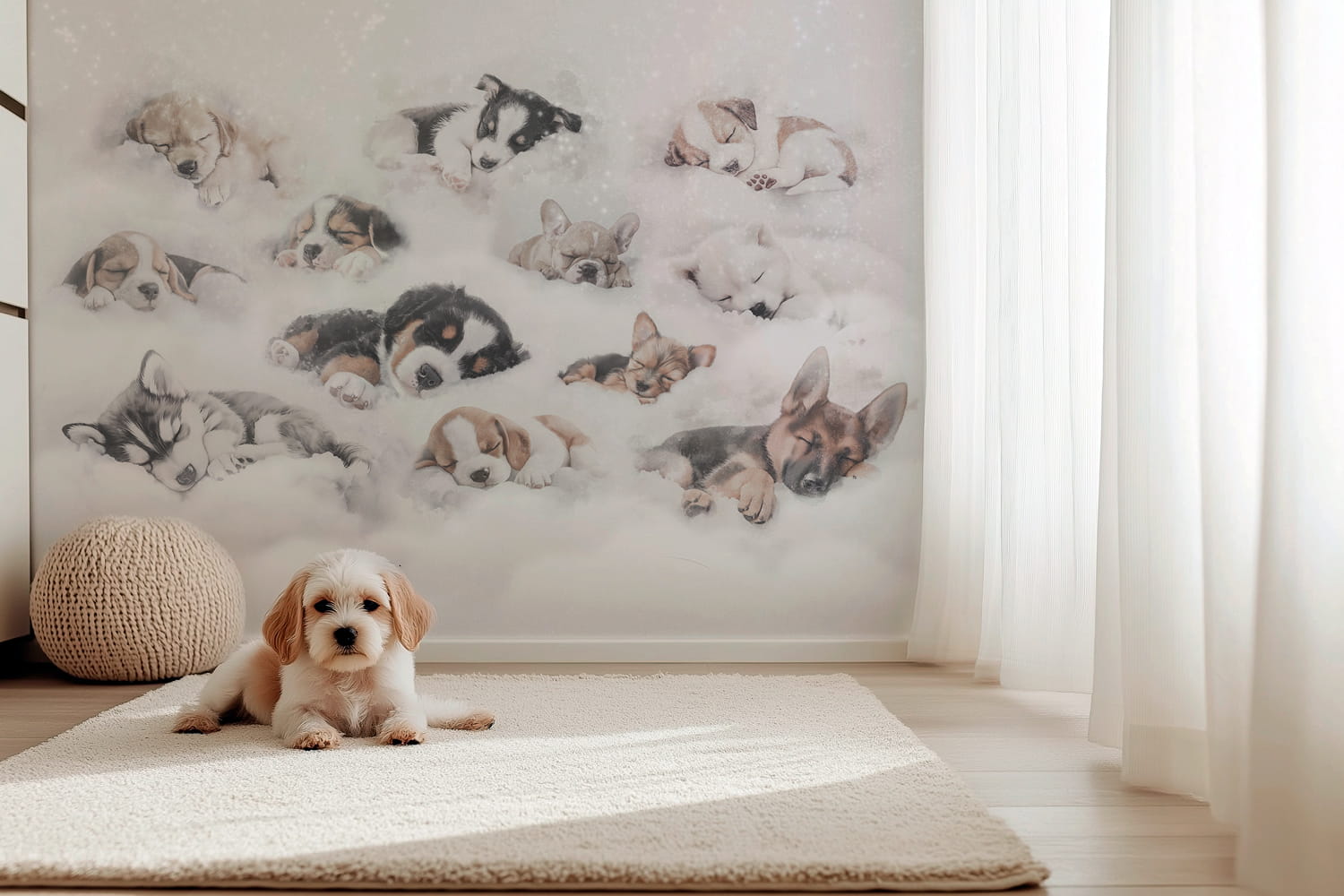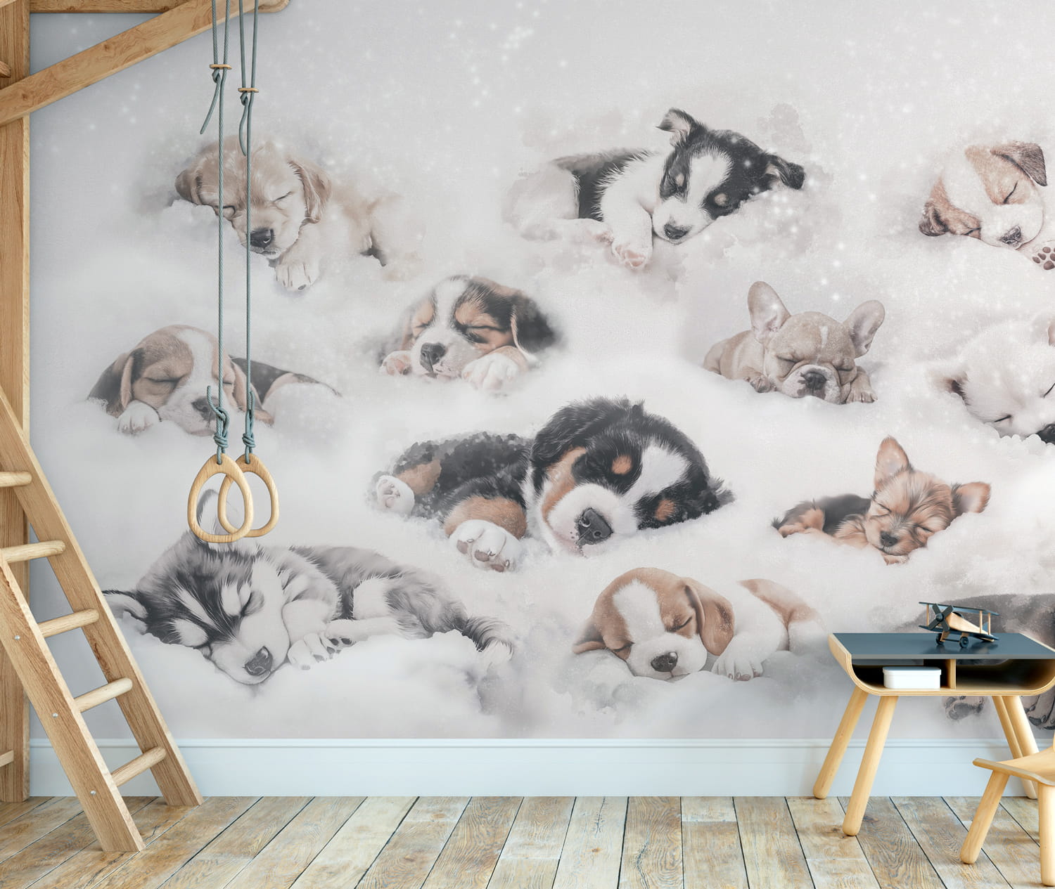 Ta urocza tapeta dla dzieci w naturalnych, beżowych odcieniach zachwyci każdego malucha. Przedstawia słodkie szczeniaki wtulone w chmurki, które wprowadzą do wnętrza trochę magii i spokoju. Każdy detal tej tapety został zaprojektowany z myślą o stworzeniu przytulnej atmosfery w pokoju dziecka a dzięki jej delikatnym kolorom, idealnie wpasuje się w każdą aranżację wnętrza i doda mu niepowtarzalnego uroku.